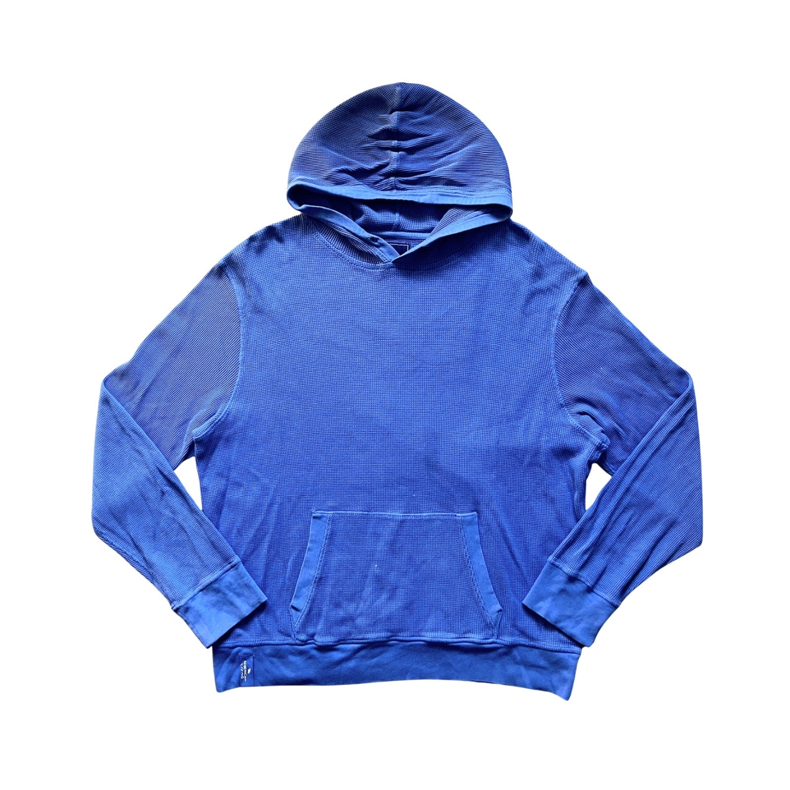 American Living Mens Waffle Knit Hooded Sweatshirt Size L Cornflower Blue Skater Classic