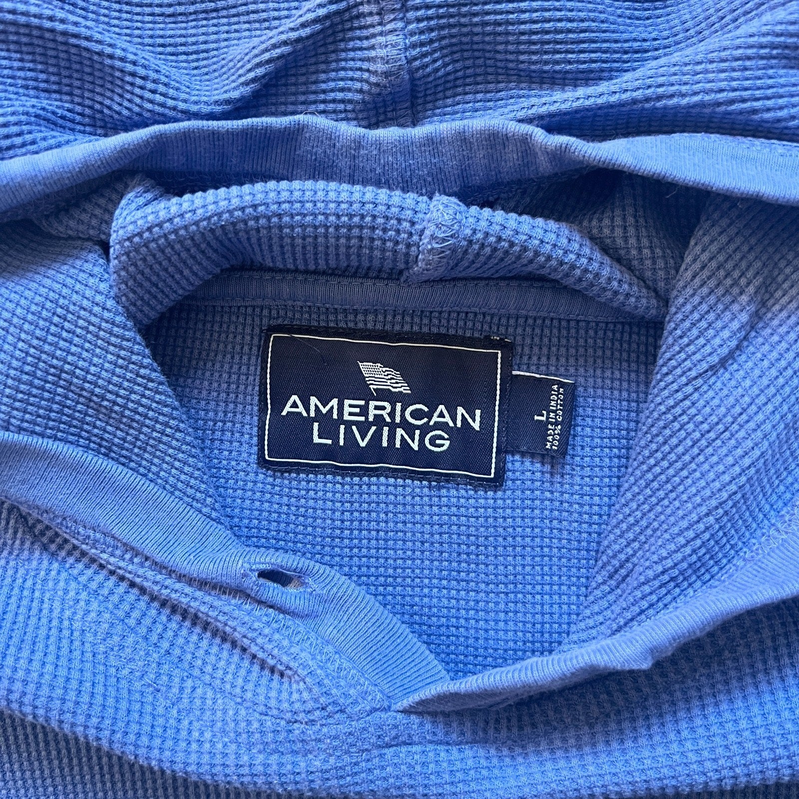American Living Mens Waffle Knit Hooded Sweatshirt Size L Cornflower Blue