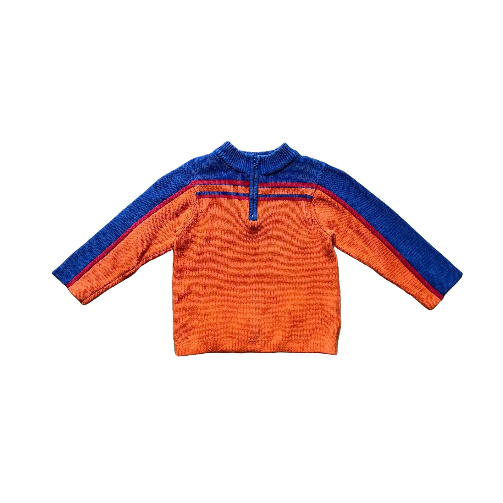 Hanna Andersson Kids 1/4 Zip Sweater Size 100 Blue Orange Colorblock Striped Retro