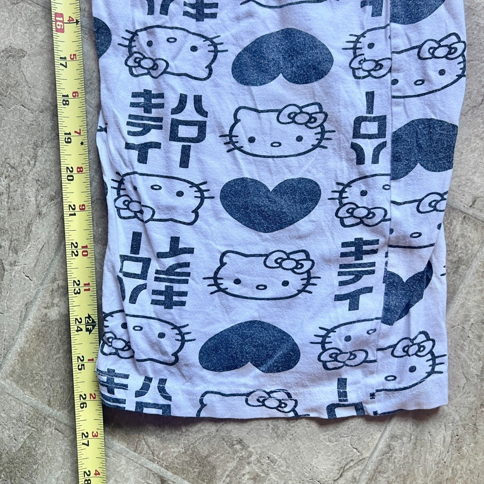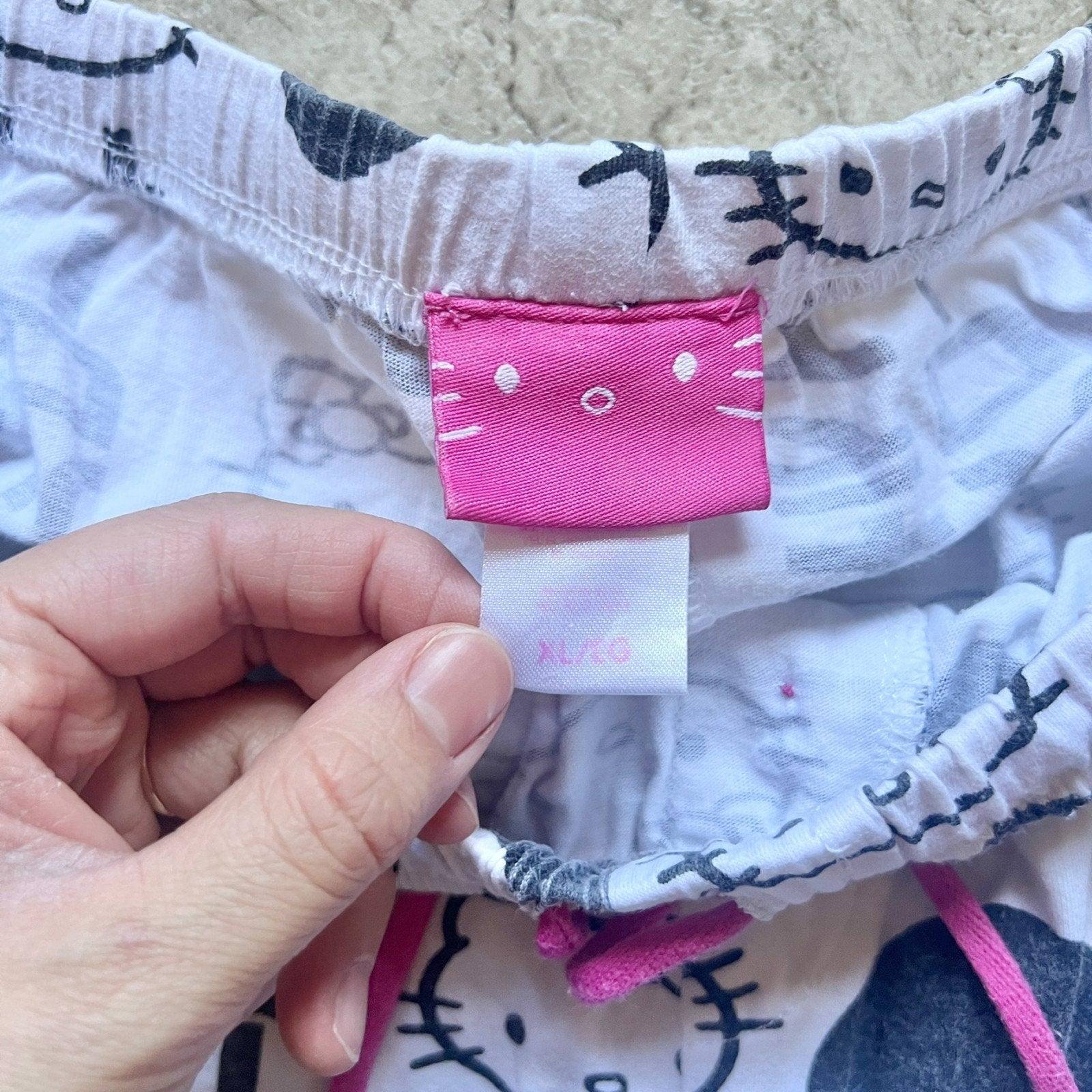 Hello Kitty Pajama Pants Juniors Size XL White Black All Over Print Japanese Spellout Y2K Sanrio Kawaii Nostalgic Feminine