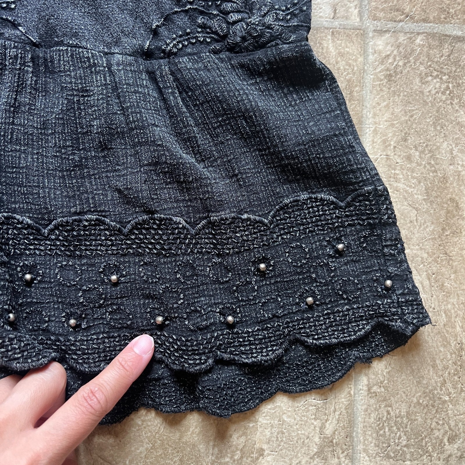Lucky Brand Womens Beaded Embroidered Tank Top Size XS Black Tassle Tie Front Fairy Goth Indie Sleaze Festival Whimsigoth Y2K