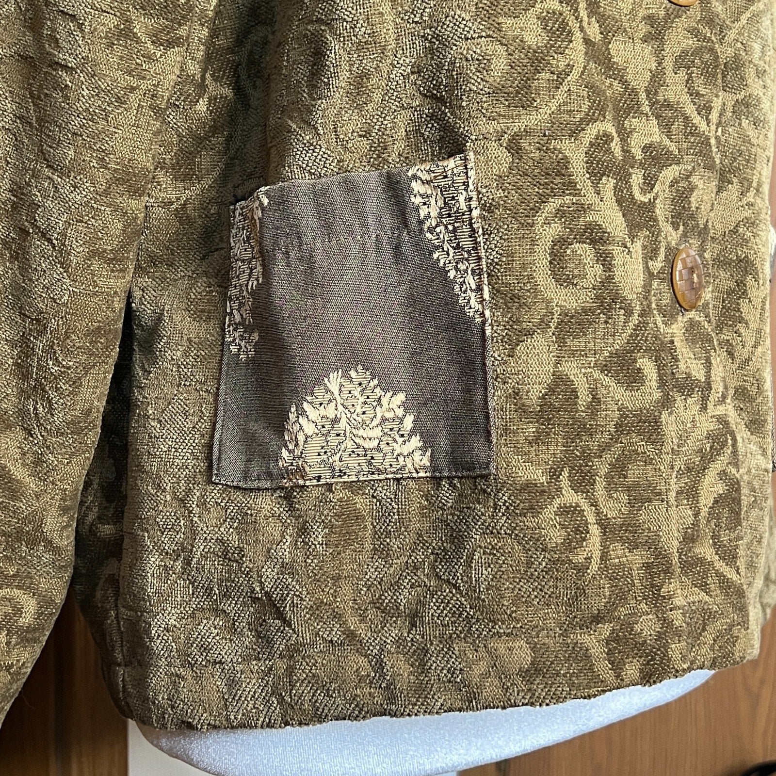 Odile Anthropologie Womens Tapestry Jacquard Jacket Size S Khaki Green Gold Vintage Inspired Artsy Eclectic Avant Garde