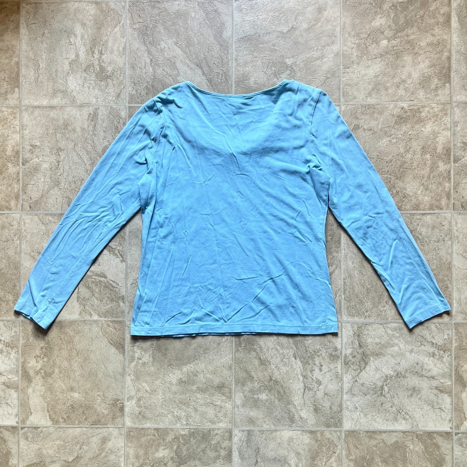 Talbots Womens Blue Ruffled Blouse Size L Pima Cotton Blend Pleated Neckline