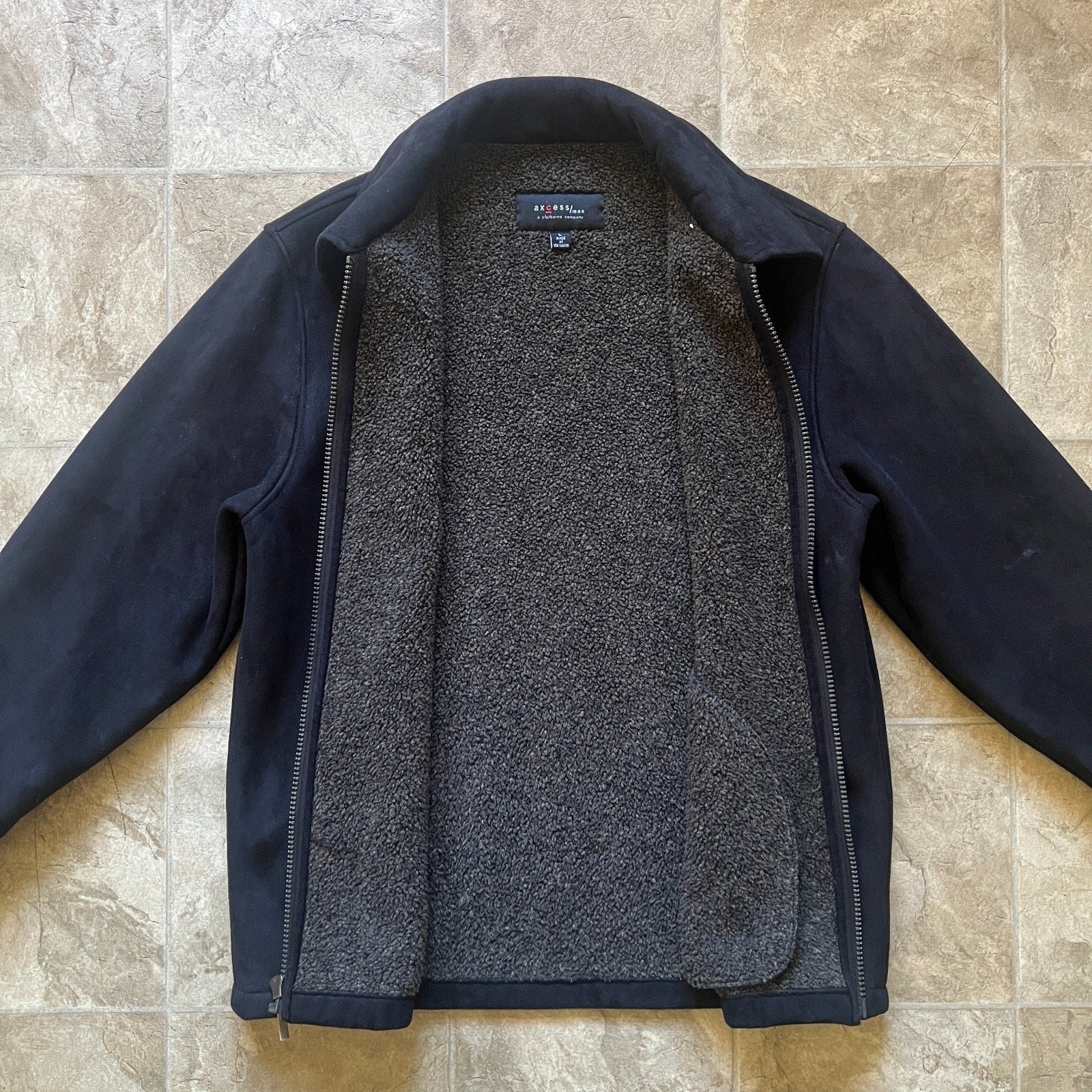 Vintage Axcess Mens Faux Suede Leather Jacket Size L Black Sherpa Lined Full Zip Goth Grunge Classic