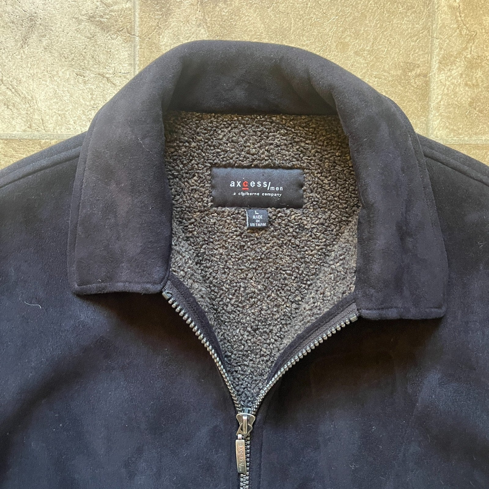 Vintage Axcess Mens Faux Suede Leather Jacket Size L Black Sherpa Lined Full Zip