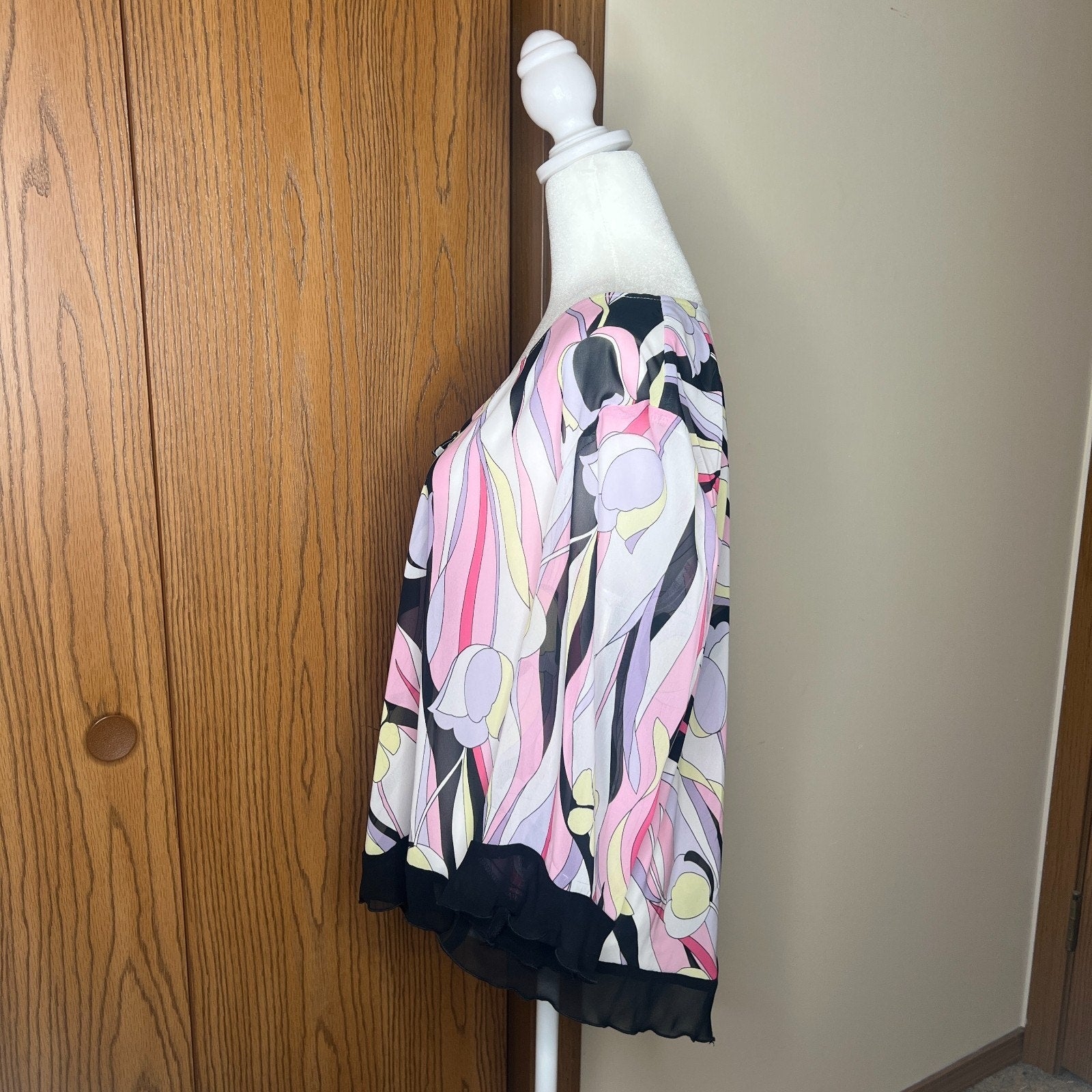 Vtg 80s Womens Cardigan 14P Light-weight Sheer Floral Mod Groovy Hippie Eclectic