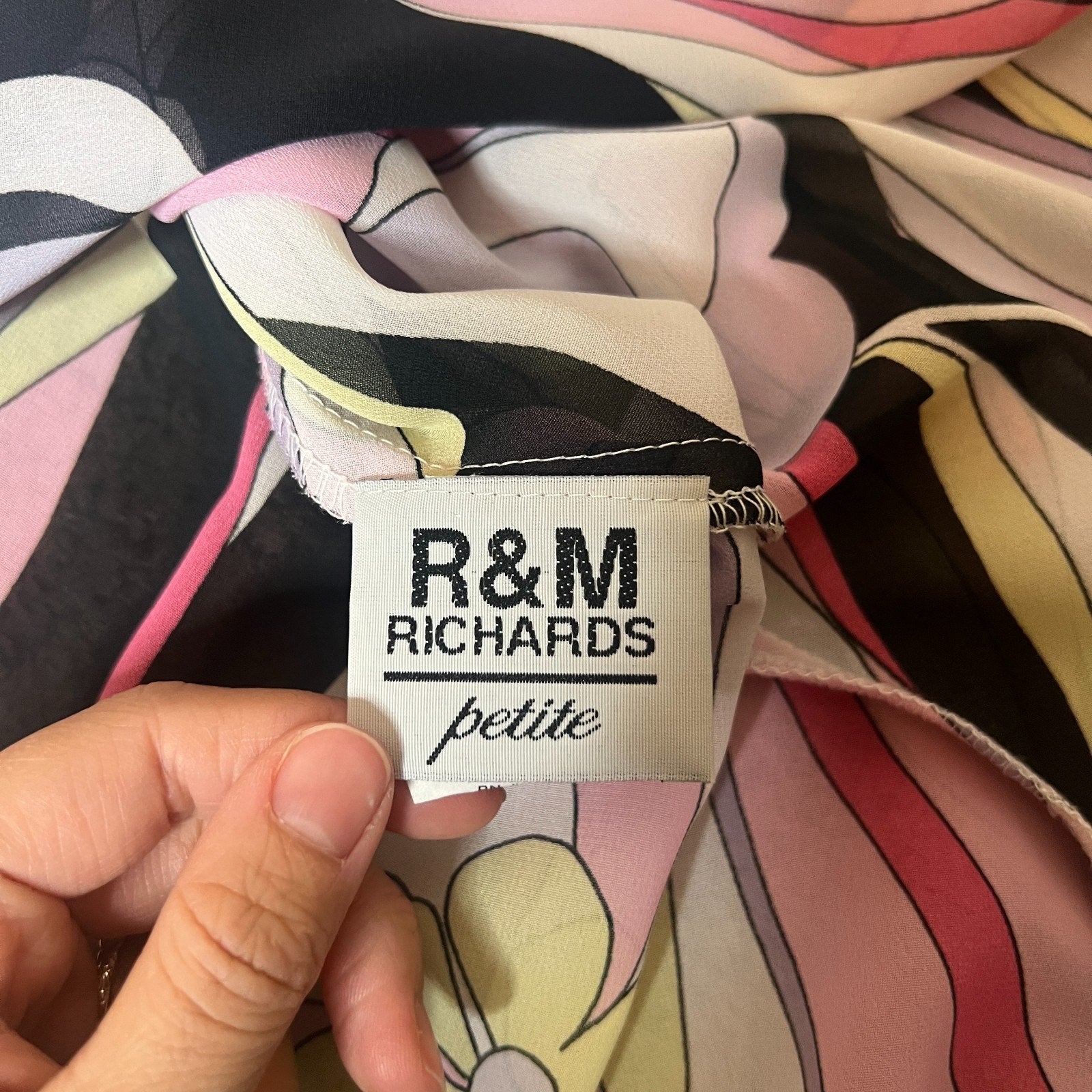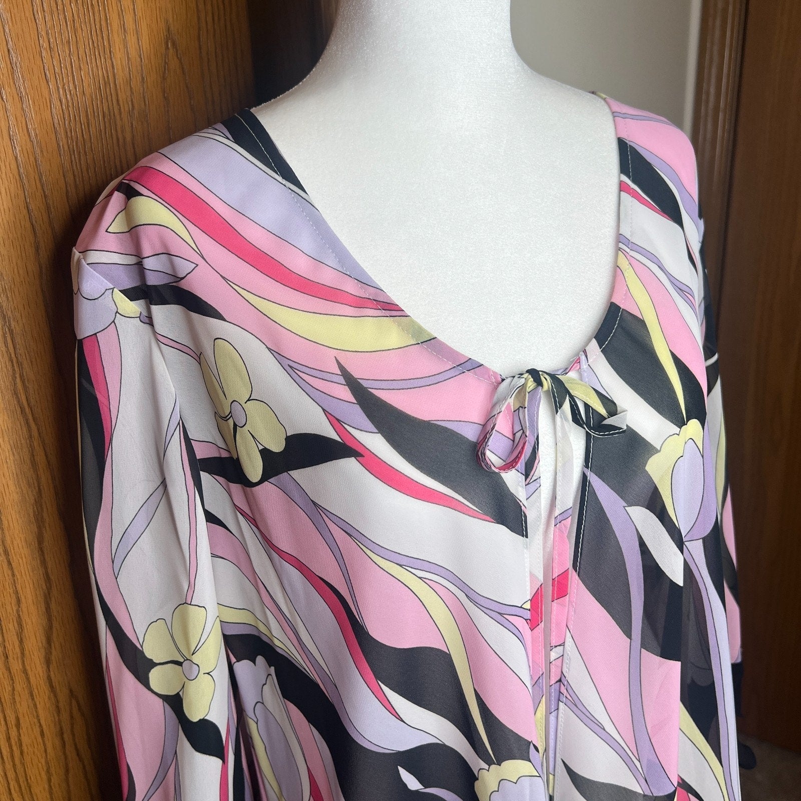 Vintage 80s R&M Richards Womens Cardigan Size 14P Light-weight Sheer Tie Front Floral Tulips Mod Groovy Hippie Eclectic Maximalist Feminine