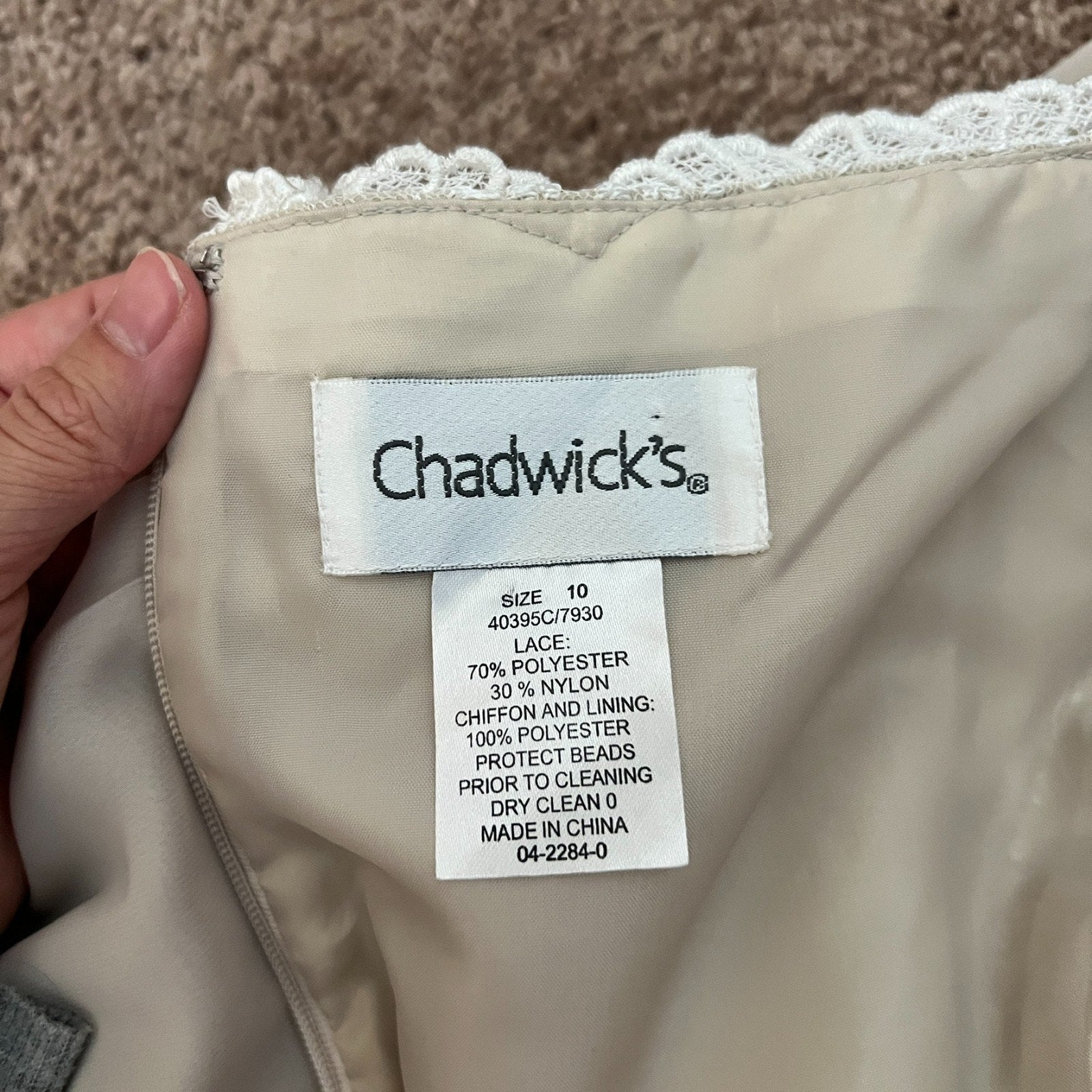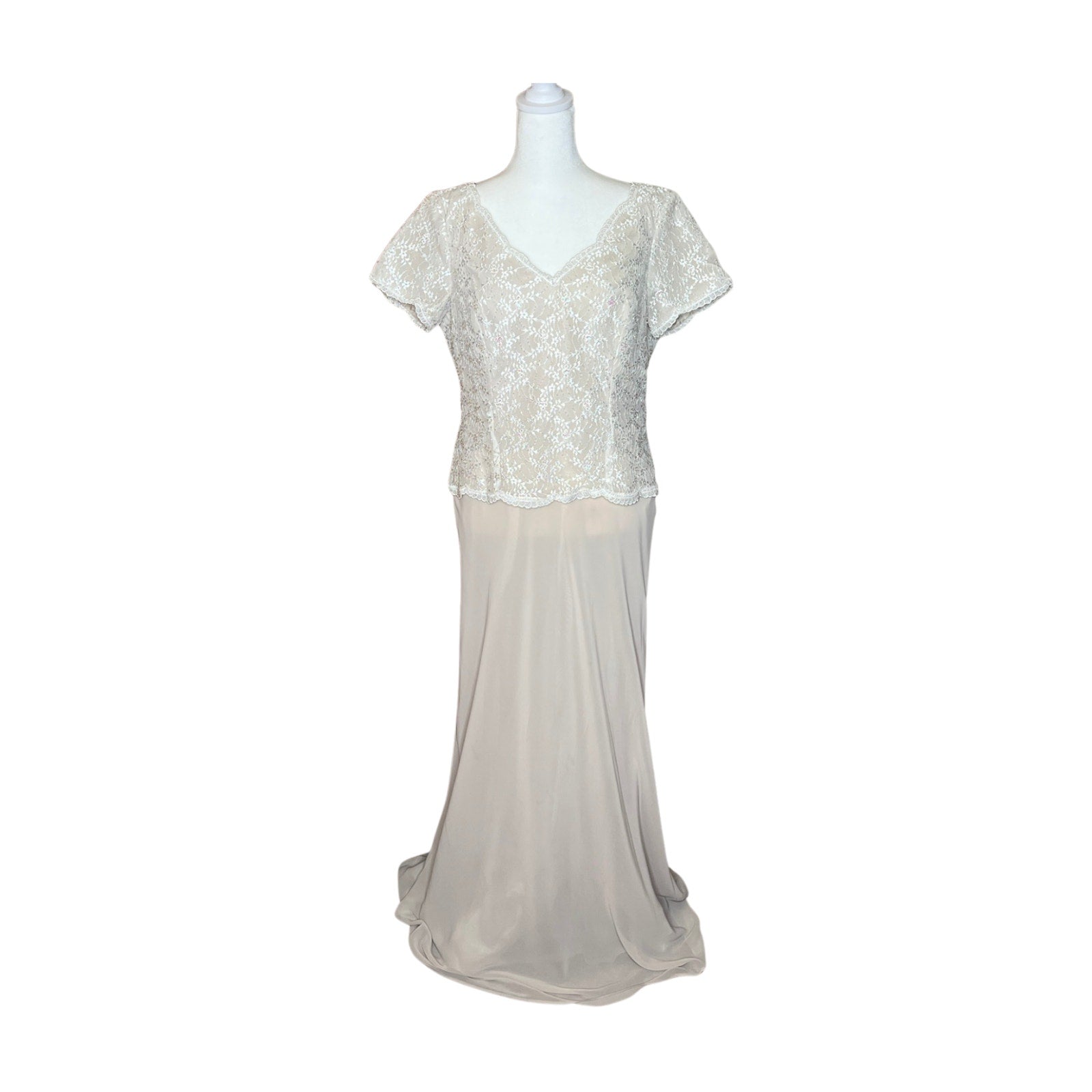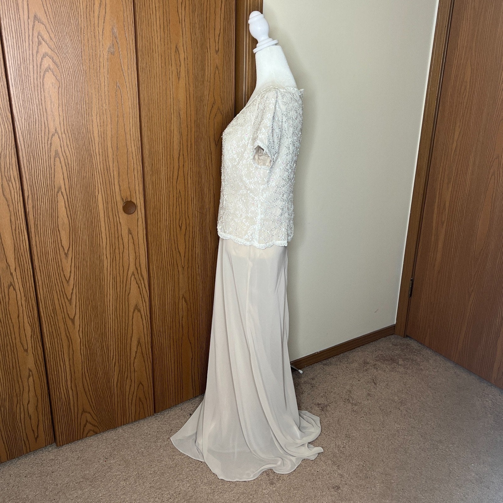 Vintage 90s Chadwick's Womens Formal Dress Size 10 Ivory Beaded Lace Floor Length