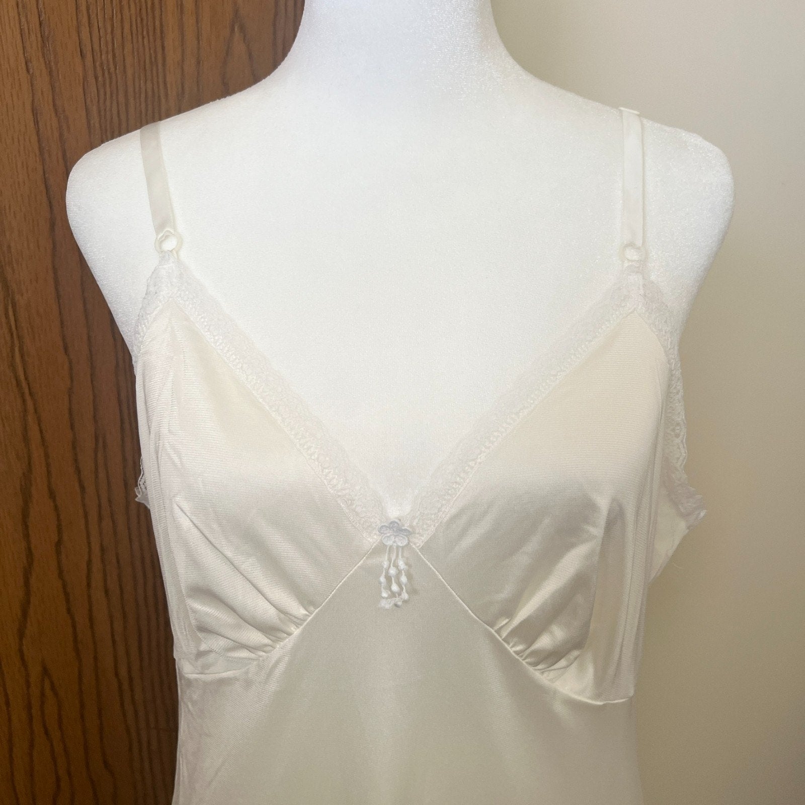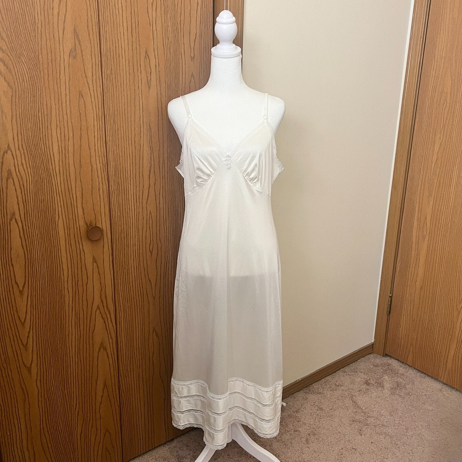 Vintage Sears Womens Babydoll Lingerie Slip Dress Ivory White Sheer