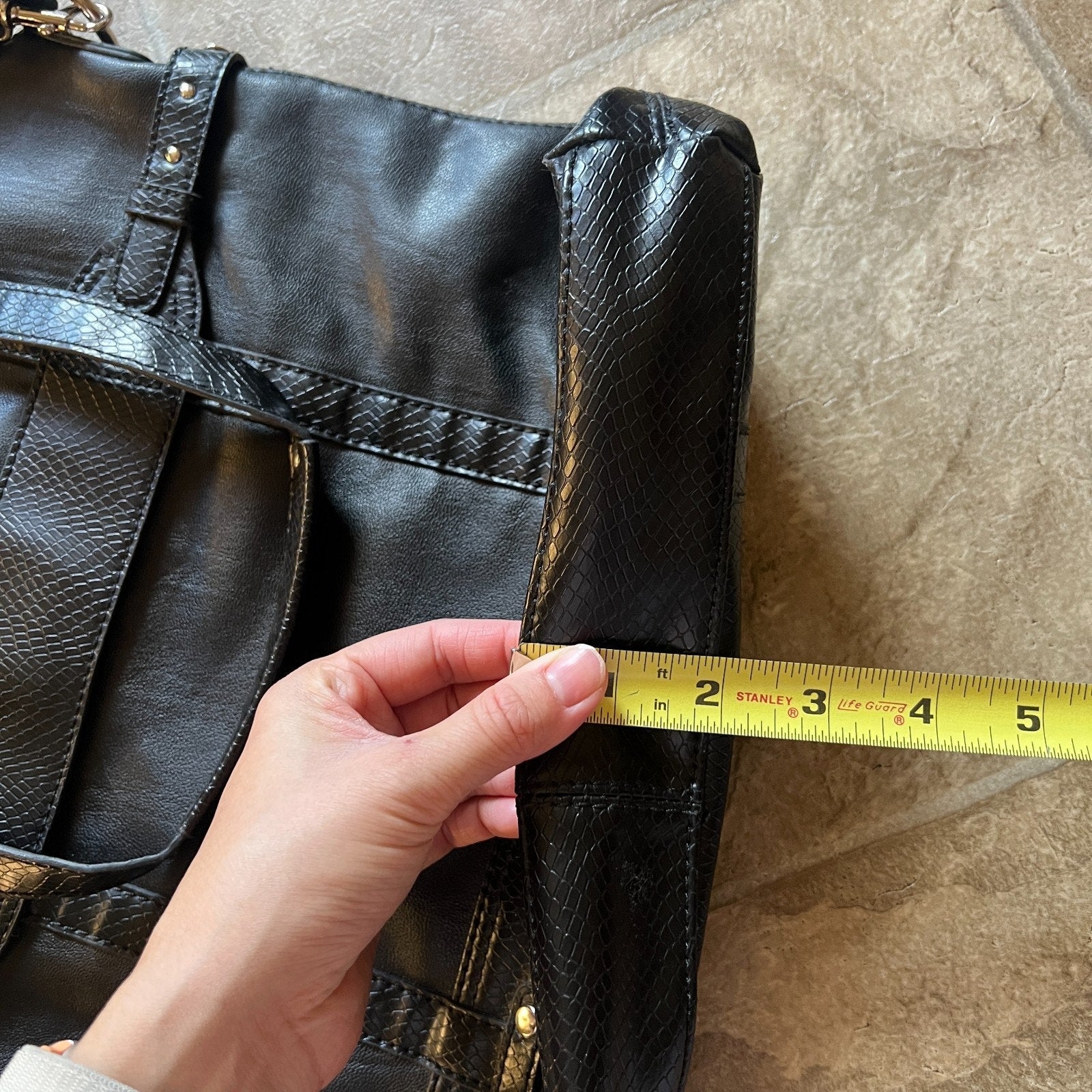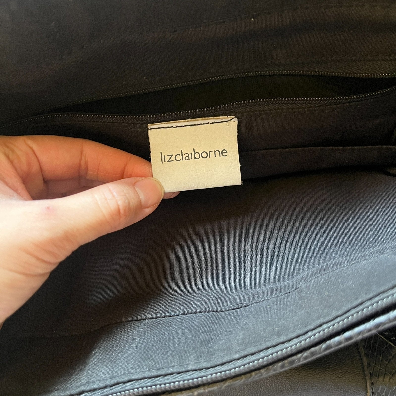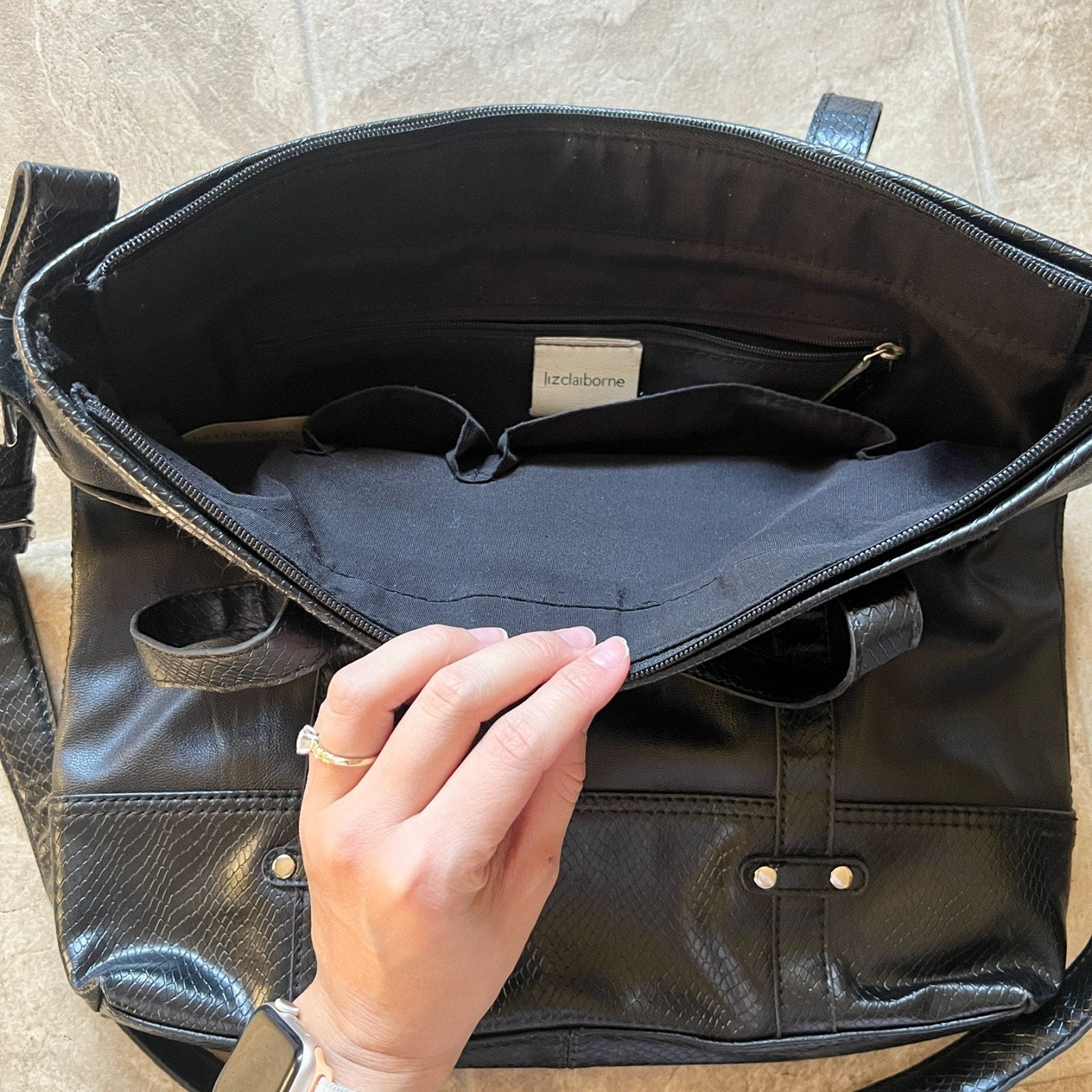 Vtg Y2K Liz Claiborne Black Faux Leather Tote Bag Removable Straps Work Business