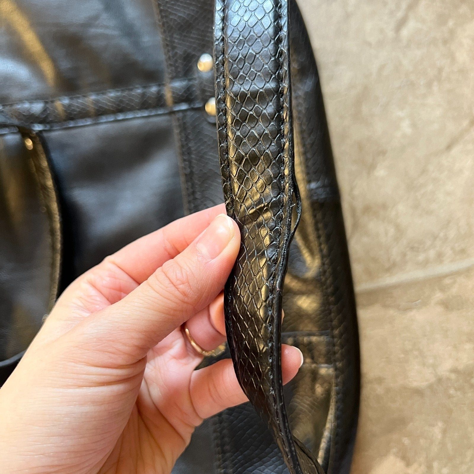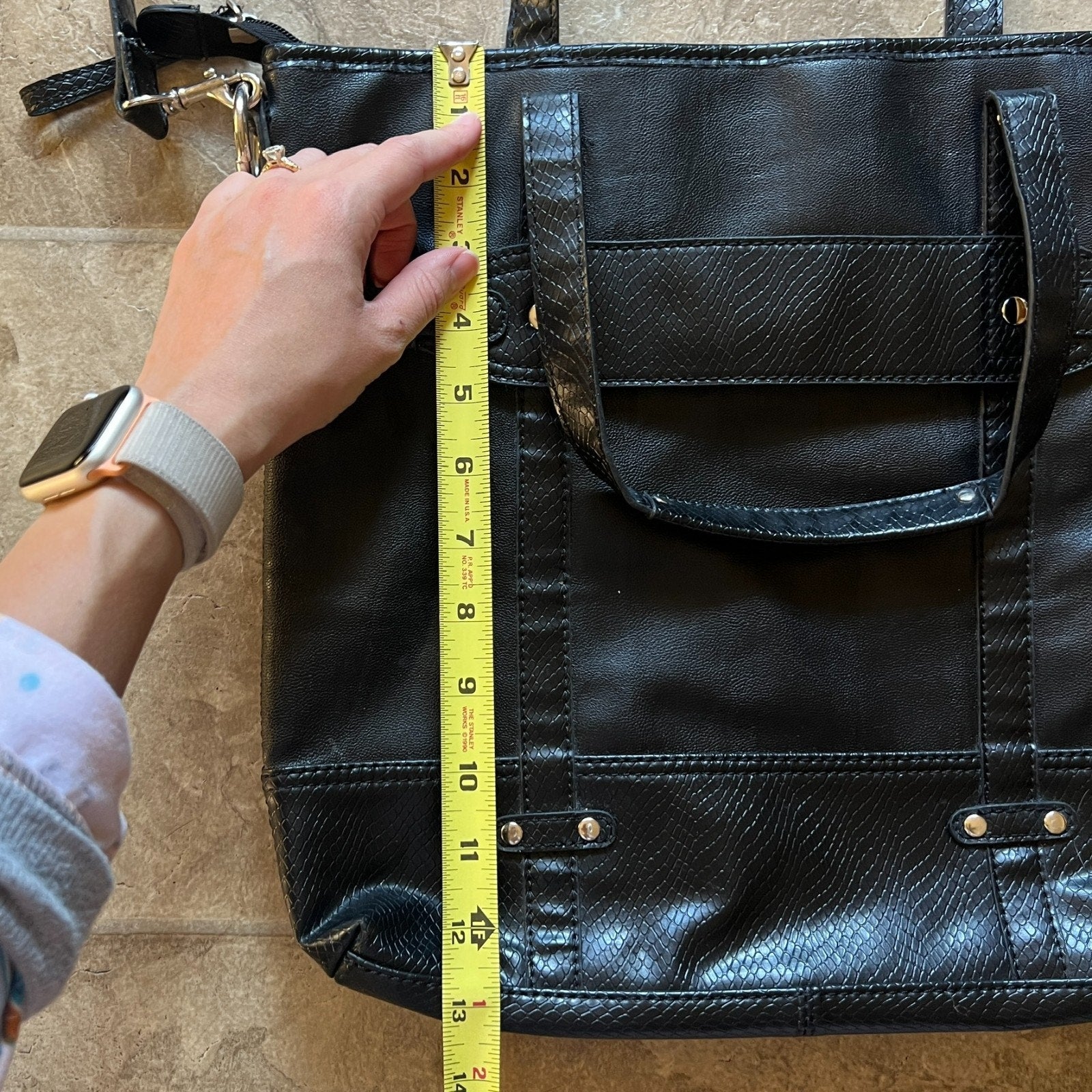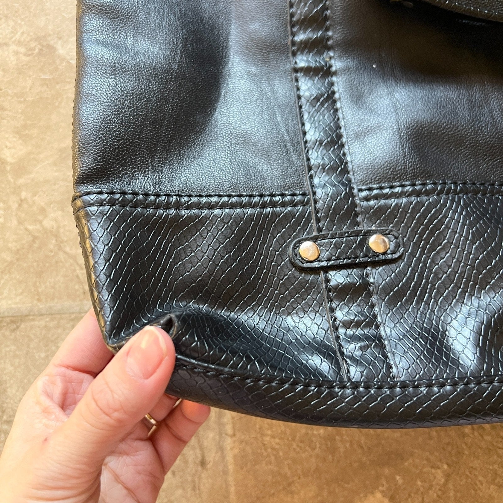 Vtg Y2K Liz Claiborne Black Faux Leather Tote Bag Removable Straps Work Business