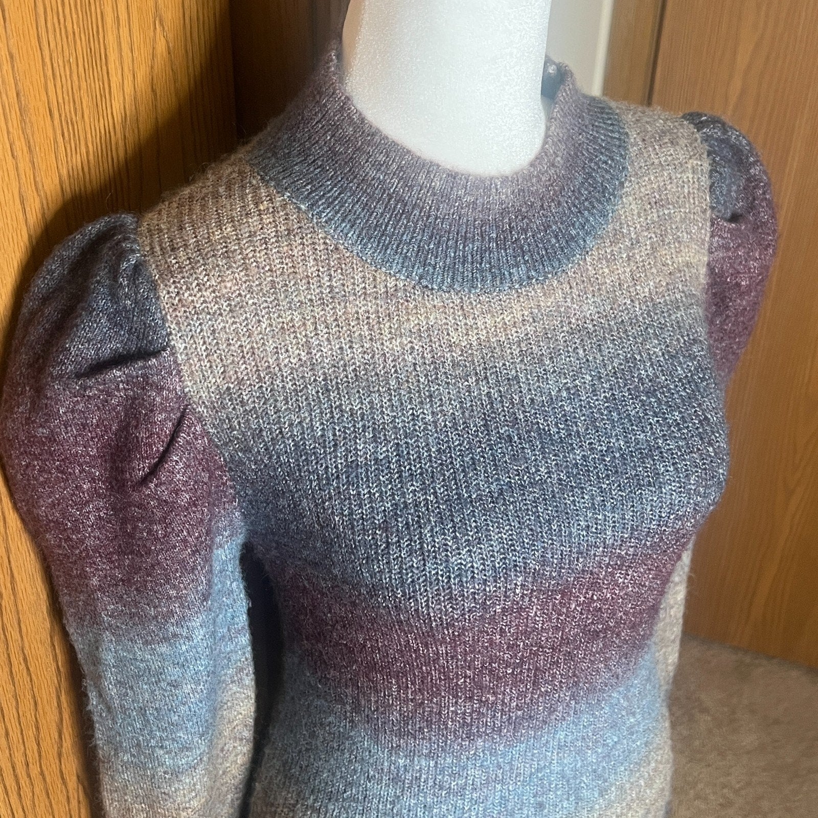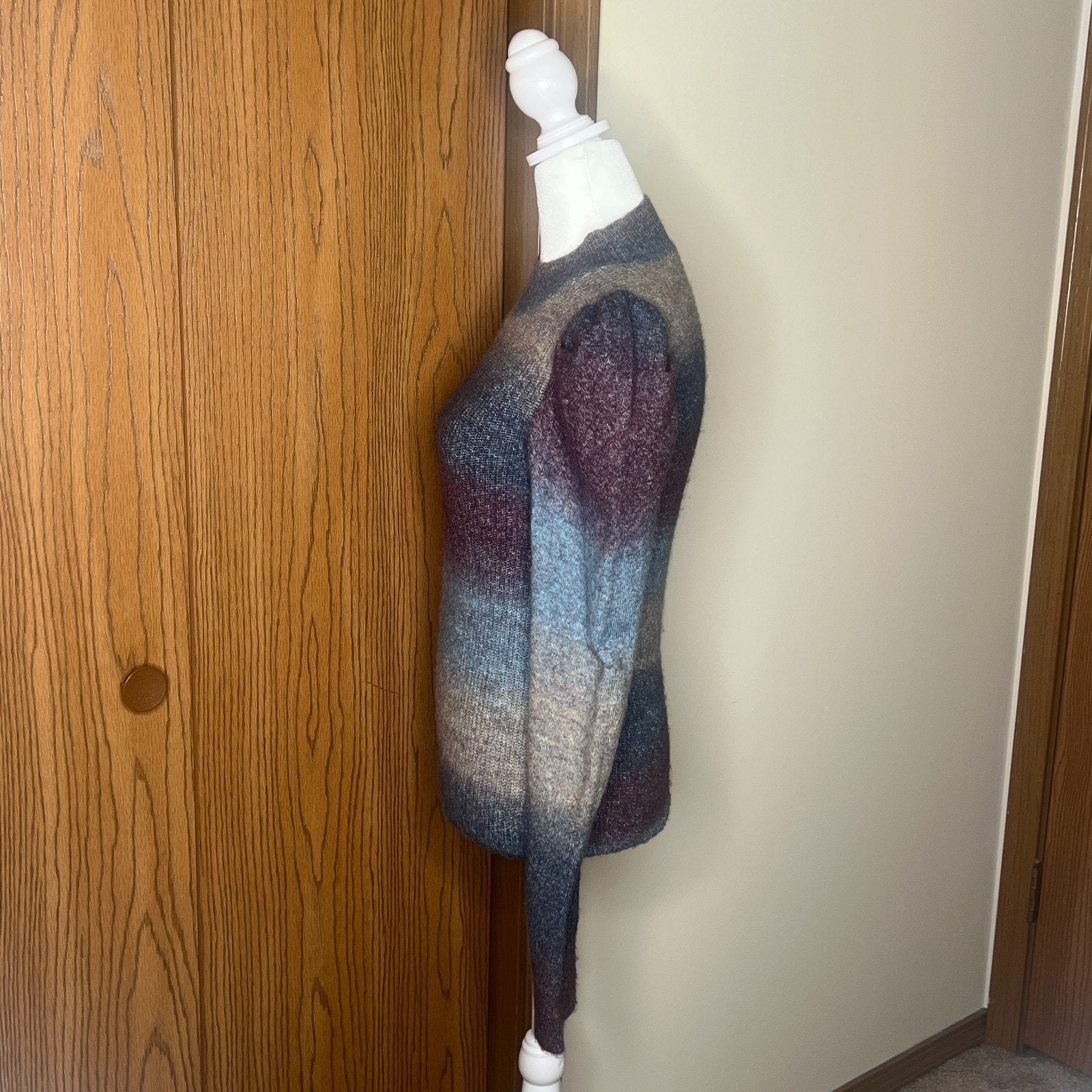 On Twelfth Womens Multi-color Ombre Mock Neck Sweater Size S Puff Sleeve Whimsical Whimsigoth Twee Cozy Fall Winter